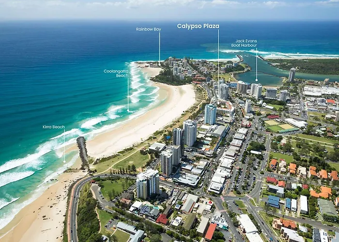 Duranbah Beach ist in einem 18-minütigen Spaziergang leicht erreichbar. Das Calypso Plaza Resort Unit 215 Gold Coast befindet sich im Bezirk Coolangatta, 1 km vom Strand Rainbow Bay Beach. Queen Elizabeth Park und Chris Cunningham Park liegen circa 5 Minuten zu Fuß vom Hotel entfernt. Die Unterkunft ist ein paar Schritte entfernt von der Bushaltestelle Coolangatta Transit.